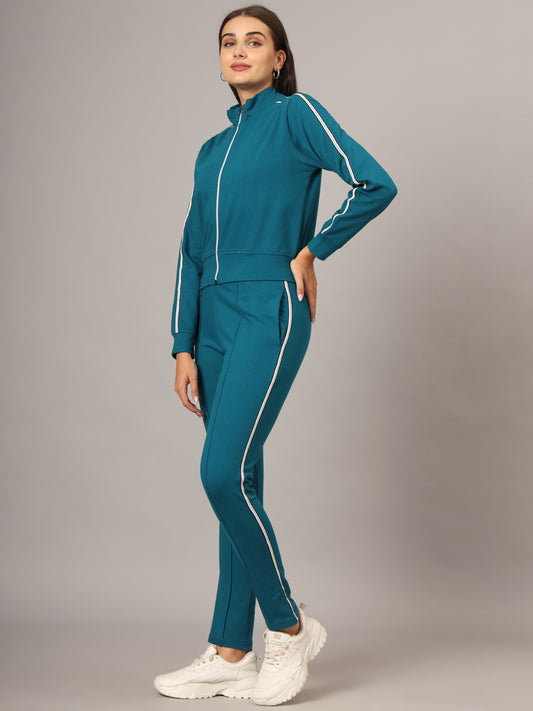 Women Collarless Solid Fleece Casual Bomber Jacket