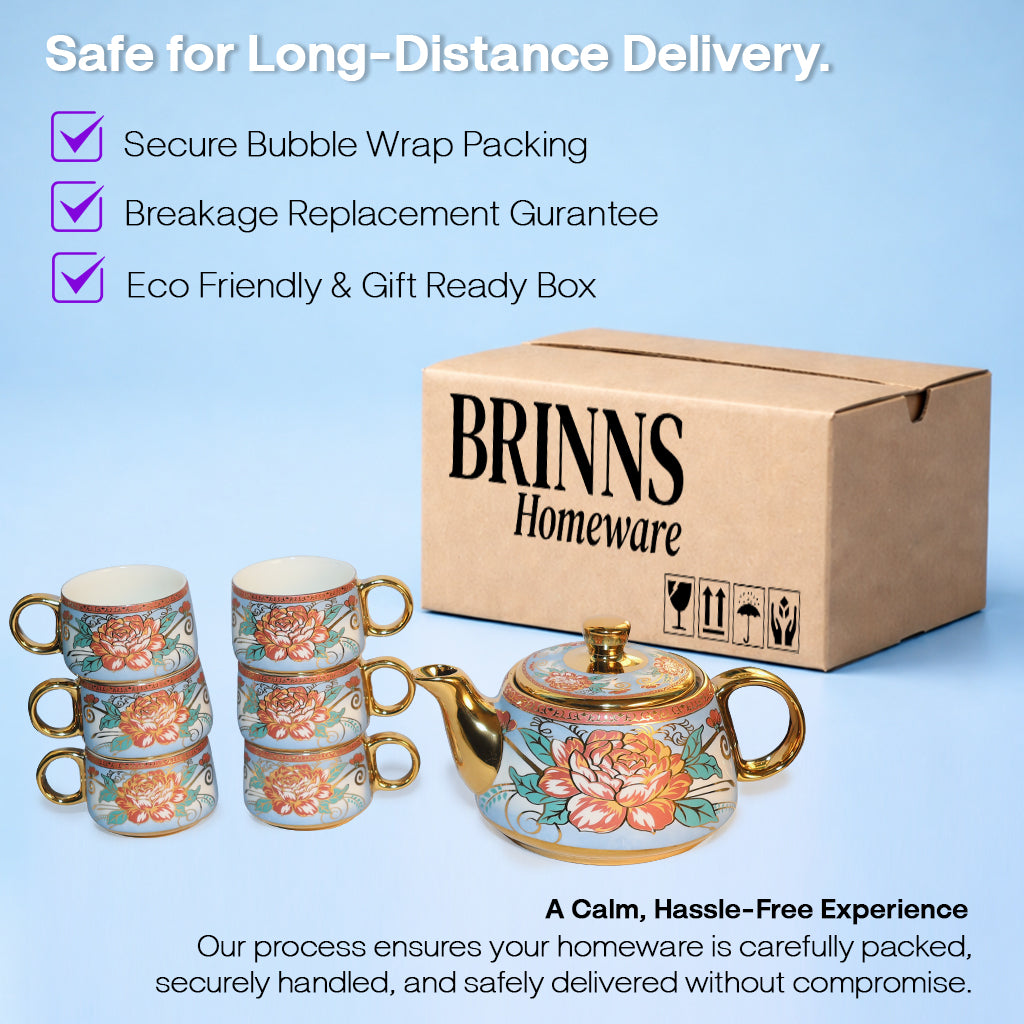 Thoughtfully crafted and finished with Gold Base & Rose in Pink colour smooth glaze, this Tea Set turns your special moments into comforting rituals. Its gentle curves and balanced weight feel just right in your hands, while the glossy finish adds a touch of warmth and character to every sip. Durable, stylish, and comfortable to hold, it’s designed for daily use while adding understated elegance to your coffee or tea experience.