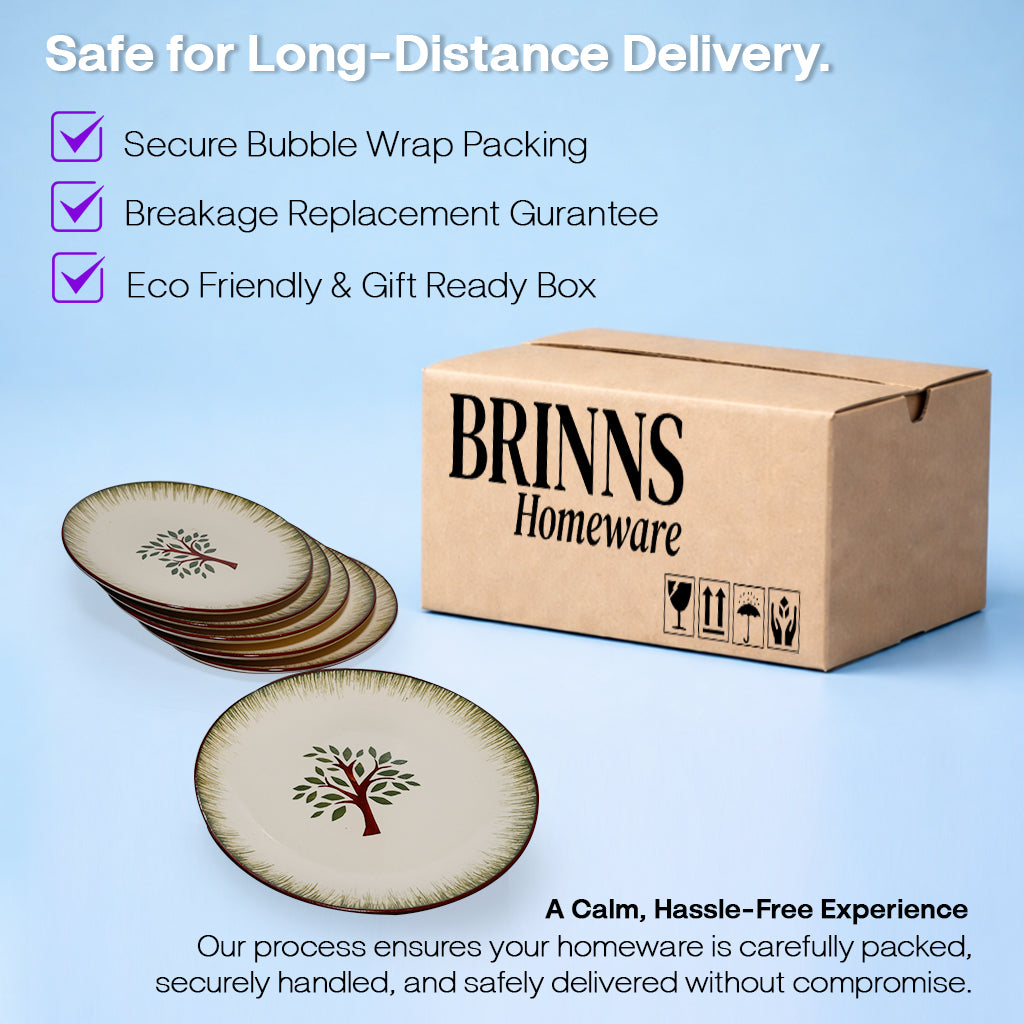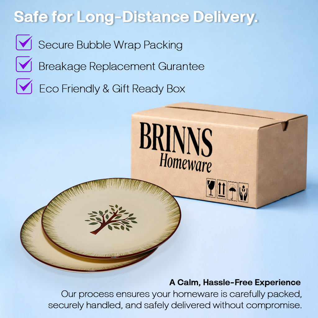 Ceramic Dinner Plate Set | Multicolour 'Palm Tree' Painting