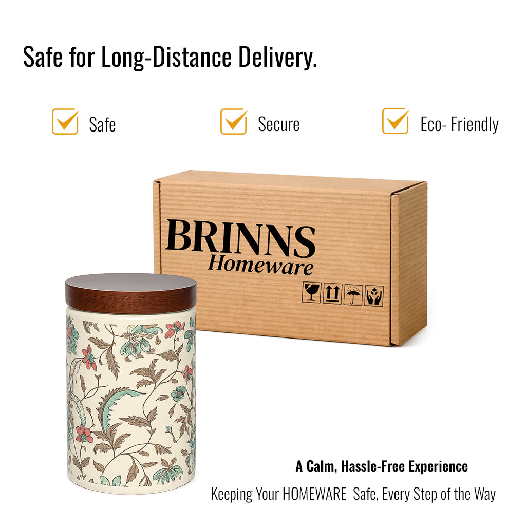 Floral Printed Jar with Wooden Lid| Multicolor | 900ml